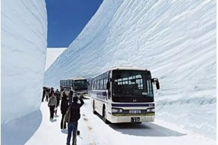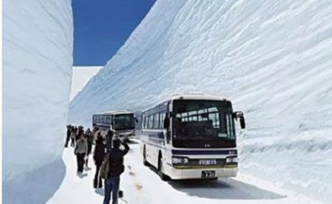 立山黑部高山道路是從富山地方鐵道的立山車站到長野縣扇澤的全長約86 公里的山嶽道路,可利用巴士、纜車、架空索道等作交通工具。它是爲了建造黑部川第 4 發電所而修建的一條運輸道路,在 1972 年全線開通。立山,在自古以來就就是人們敬奉、修行的名地,這裏有彌漫著硫磺味、寸草不生的地獄谷,還有立山最大的火山湖禦廚池,和夏季也不化雪的溪谷。從春天的新綠到秋季的紅葉,一年中前來欣賞四季景觀的登山者絡繹不絕。黑部川上游的【黑部水庫】,蓄水量 2 億噸,高度爲186 米,是日本最高的拱形水庫,從水庫展望台看水庫放水,氣勢宏壯,使人百看不厭。高山道路沿途還有許多景點,如一塊巨岩構成的惡城壁以及落差 350 米、氣勢爲日本之最的稱名瀑布和盛夏時期仍湧冒著 2~5度泉水的室堂等,都令遊人讚歎不已。立山黑部峽谷(阿爾卑斯之路):立山的紅葉前線由山頂到【美女平】,標高差達2000m,紅葉期長達1個月,紅葉帶每天以30m的速度由立山山頂向下降,色層濃淡成三段紅葉,深谷紅葉美不勝收。專車前往「中部山岳國家公國」的入囗玄關:立山車站,轉乘6種登山交通設施,最高點到達海拔2450公尺的【室堂】,沿途高山四季的綺麗景觀,以及工程建設的鬼斧神工之妙,保證令您嘆為觀止。