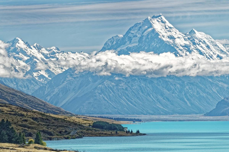 普卡基湖Lake Pukaki是眺望庫克山頭終年積雪不融景色的最佳地點,沿途瀏覽庫克山國家公園區美景,Mackenzie Country地區曠野景色以及南阿爾卑斯山雄偉之山景。
