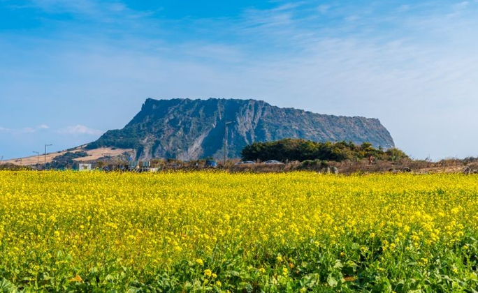 世界最大的突出於海岸的火山口,於10萬年前海底火山爆發而形成的巨大岩石山,是濟州島的代表名勝之一,攀登30分鐘左右到山頂;在城山日出峰頂端觀賞日出一直是瀛州十景(濟州十大美景)之最,從蔚藍海平線上緩緩升起的太陽染紅整片海洋,如此美景讓人不禁由衷發出讚嘆,其西海岸有海螺、鮑魚養殖場,運氣好的時候還可觀看到韓國國寶級海女潛水採集海產的情景。原被列為地方紀念物的城山日出峰,於2000年7月19日被指定為天然紀念物,並於2007年被正式登錄為世界自然遺產。