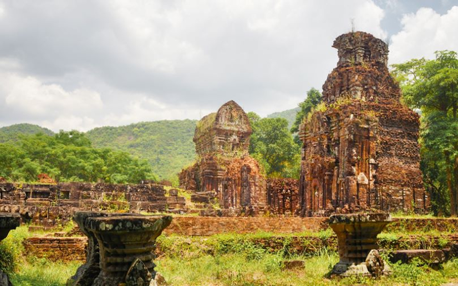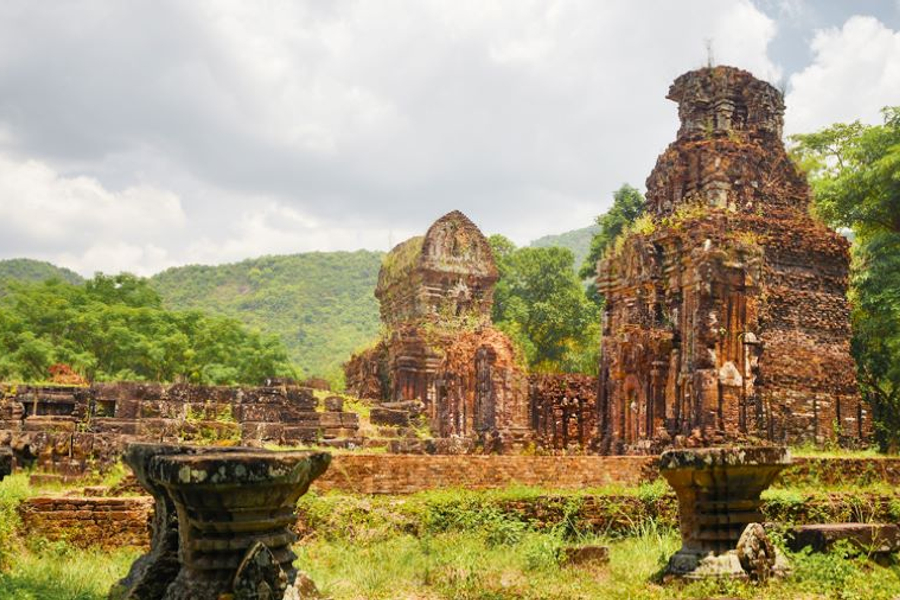 距離會安古城約50公里,地處直徑約二公里的山谷內,在1898年被一位法國考古專家發現了用磚石砌成的71座塔寺。現有20座不完整,但仍保持著原始模樣。這是占婆王國用以祭祀君主和神靈的印度教聖地,建於4~13世紀末,是東南亞唯一長期連續發現的建築群體。這個區域之奇妙,在於占婆塔巧藝工匠之建塔技術、石磚雕刻藝術和審美觀。在中國史書讚揚占婆人是「砌磚藝術大師」,磚塊大小為31*17*5厘米,燒製溫度硬度均勻,密密的重疊,不用灰漿,尚未研究出其所用的黏結劑。在1999年12月美山聖地被世界文教組織列為世界文化遺產。