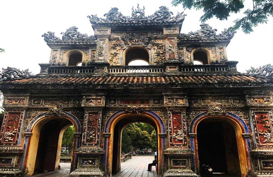 會安五星級:溫德姆會安皇家海濱度假村Wyndham Royal Beach Hoian 或 嵐景峴港會安度假村及水療中心Renaissance Danang Hoi An Resort & Spa 或 會安南岸新世界酒店New World Hoiana Hotel 或 同級 第 3 天 HOTEL-途經世界50大自然美景~海雲嶺→ 順化→ ★漫遊世界遺產【阮朝十三代皇宮~大內皇城】→ 特別安排~三輪車遊順化古城→ 搭乘仿古畫舫遊覽香江→ 400年歷史天姥寺 世界遺產~大內阮氏皇城 聯合國科教文組織於1994年認定為『世界文化遺產』。內外共分三層,最外層因為護城,寬21公尺高7公尺,周長共有10公里,開有十道門,並有護城河圍繞,城內有龐大的宮殿、內有午門、太和殿、寺廟及花園、橋樑等古建築群體。阮朝開國君王於1804年始建,費時30年完工,為1802年至1945年阮朝之皇都,此地就像中國的北京紫禁城有異曲同工之妙。 三輪車遊順化古城 人力三輪車遊順化皇城安排搭乘人力車遊覽順化京城體會越式浪漫風情。在不疾不徐地速度下,讓您緩緩探訪周遭街區,沿途可細細品味沉睡中的古城之美。不含車夫小費,建議每人2萬越南盾。 仿古畫舫遊覽香江 香江渡船碼頭,搭乘仿古龍舟畫舫遊覽香江在江風徐徐的吹拂下,瀏覽香江邊兩岸之風景及順化市集,古意盎然,非常詩情畫意。 天姥寺 此寺建於香江畔的山丘上寺前有福緣塔於1844年由阮朝第三位皇帝啟定皇帝所建,塔右側有碑石閣、左側有六角閣,塔後聖殿則供奉三寶佛。其所在位置據說為龍脈之首,不僅地理風水好連風景視野都是上乘之選。