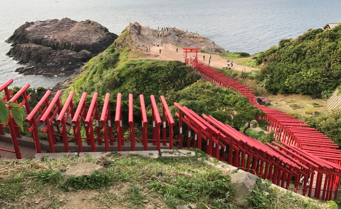 【喵喵神社(雲林寺)】喵喵神社(雲林寺)位於山口縣萩市,近年來在愛貓人士間名氣大增,「雲林寺」在日本的寺廟中屬於「 臨濟宗南禪寺派」,主奉「觀音」,是當地相當知名的寺廟。不僅寺內有超過600尊的貓型雕塑,更有不少真貓懶散地就此大剌剌的躺在地上,原來,這都是因為過去的歷史,與現任住持愛貓的原故。不過,其實這樣間有「貓寺」之稱的寺院,過去曾有段頗為哀傷的傳說。 【萩・明倫学舎】萩・明倫学舎位於山口縣萩市,分為本館、2号館、旧萩藩校明倫館,共3個部分 1.本館為觀光案內中心、2.2号館再2015年7月被列為世界遺產,當中包含了日本明治時代的工業革明遺產和幕末維新期的歷史和科學技術史、3.旧萩藩校明倫館也就是萩藩校明倫館的跡地,所有的歷史見證史跡通通再這。【萩城跡指月公園】萩城跡指月公園位於山口縣萩市、維護著萩城跡的公園。萩城是由毛利輝元取代廣島城的新居城,於1604年建立的城,現在保存下來的僅有石垣和堀,而二丸土塀和三丸總門是由修復而得來。1951年被指定為國家史跡。指月公園的特征是遺留著城跡的構造,以園內的天守閣跡為首,遺留著明治時代被移建的有排場的梨羽家茶室、花崗岩所築成的萬歲橋、到了5月杜鵑花盛放的東園等的遺址。其次,到了春季以被指定為縣天然紀念物的綠吉野為首的600株櫻花齊放,作為賞花的名勝景點被人們所青睞。 【元乃隅稻成神社】元乃隅稻成神社是位在龍宮之潮吹旁,有著連綿不絕的赤紅色鳥居的神社。這裡的鳥居共有123座。其供奉的是祈求商業繁榮、漁獲豐收、航海安全、實現姻緣、求子、開運除厄、福德圓滿、交通安全、學業成就、願望實現等的大神。長達約100公尺以上,連延不絕排列的123座鳥居,其景色十分的壯觀。神社的參道出入口的最上處大鳥居上面設置了功德箱,參拜人士若想捐獻的話,便須要瞄準那裡,將香火錢投入。相傳,如果成功將香火錢投入,願望便會成真。 【角島大橋】山口縣下関市的角島以前只能是坐船去的,但是自從2000年完成了角島大橋之後可以通往陸地了。角島大橋的特徵是橋的高度不是很高,而且考慮了周邊的景觀而建造的,並且時速限制在40碼,在安全面也做了十分周全的考慮。日本超人氣偶像劇『HERO』拍攝點,也經常在汽車的廣告中登場,角島大橋全長1780米是日本當今第二長橋。