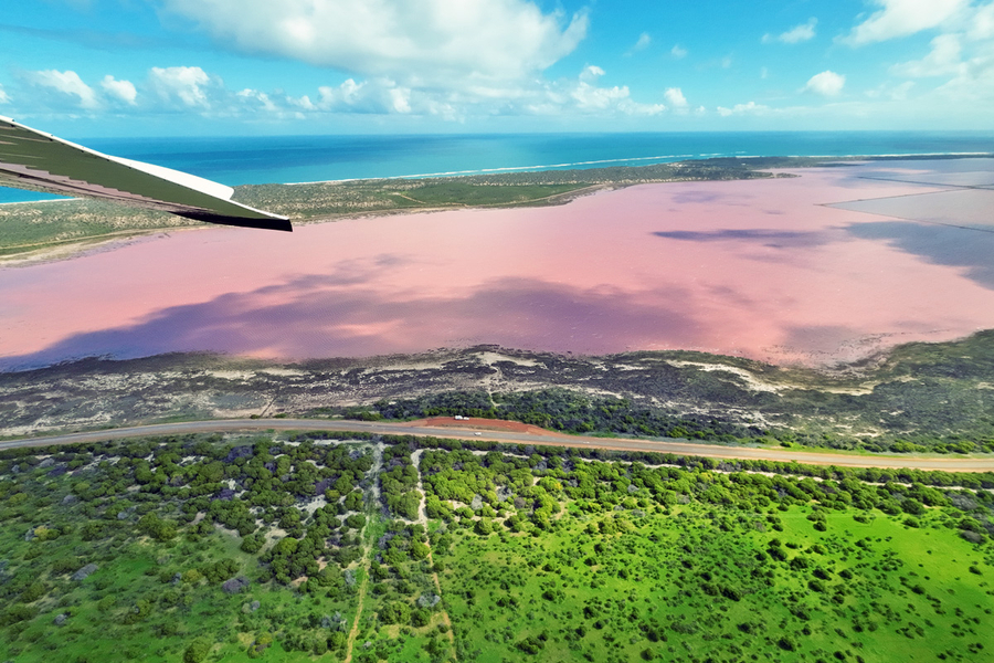 搭乘輕型觀光飛機升空而起,展開一場令人屏息的空中冒險!隨著飛機緩緩爬升,珀斯城市景觀逐漸縮小,壯闊的西澳海岸線與遼闊原野在眼前展開,視野無限延伸,帶來截然不同的旅遊體驗。飛越湛藍印度洋與荒野大地後,迎來此行最震撼的亮點-粉紅湖!從高空俯瞰,湖面呈現夢幻般的粉紅色澤,隨著陽光與角度變化,交織出粉紅、玫瑰、甚至帶點紫色的漸層色彩,宛如大自然打翻的調色盤,美得令人難以置信。