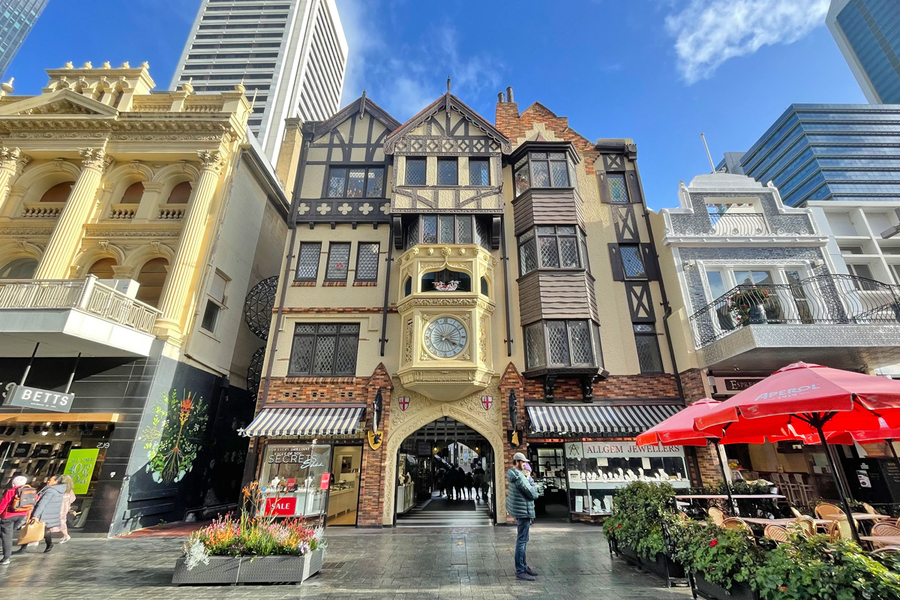 興建於1937年,是珀斯知名的徒步街區,具有英倫風味的懷舊浪漫,白色的建築外觀加上咖啡色的線條,營造出都鐸王朝的歷史感,為珀斯最具特色建築群之一。街道兩端的入口處,分別擁有兩座法國魯昂「大時鐘」和倫敦「大笨鐘」的複製品,多年來依然準時響起。【包含門票】伯斯鑄幣局