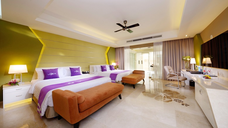 特色1/ 連泊二晚大紅花渡假村,有別於市場入住葉子,我們直接升等花瓣房型。