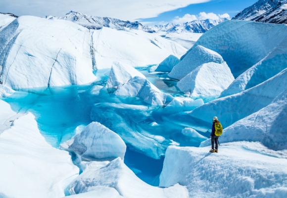 馬塔努斯卡冰川(Matanuska Glacier),在專業嚮導的帶領下進行冰川徒步體驗(約2小時)。馬塔努斯卡冰川是阿拉斯加最大的可以乘車抵達的冰川,被歸類為山谷冰川,其在自身重力作用下就像一條河流覆蓋在山谷中,從楚加奇山脈向北蜿蜒流至葛蘭高速公路,是安克雷奇和葛籣納倫之間最熱門的景點。跟隨嚮導一起,在這個有萬年曆史的冰川上,感受一望無際的純白和冰川形成的湛藍冰洞。由於山谷冰川的地貌特徵,冬季比周邊地區更容易出現陽光明媚的天氣,因此馬塔努斯卡冰川是很多冰川徒步者的不二之選。且這片區域因為冰川和綿羊山的加成,成為阿拉斯加景色最壯麗和令人驚歎的地區之一。