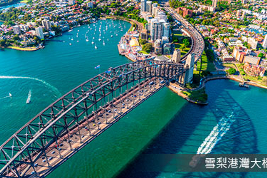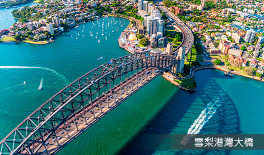 雪梨港灣大橋 Sydney Harbour Bridge 俗稱(coathanger)大衣架,不論您走在雪梨港灣的那個角落幾乎都可以看見它,是目前全世界最大的鋼鐵拱橋,橋拱長503公尺,橋面長1149公尺,連接至北雪梨重要的交通樞紐。