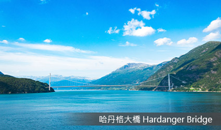 橫跨哈丹格峽灣,2013年8月才剛開通,是一座超級新的橋樑。橋上有規劃雙向車道與自行車道,是挪威跨度最長的懸索吊橋。特別的是,連結哈丹格大橋兩側的道路都是隧道,因此,哈丹格吊橋也是世界上銜接兩隧道間最長的吊橋。