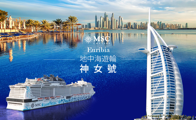 歡迎來到地中海遊輪旗艦級『MSC Euribia神女號』。船上精選的自然建築材料映射出別樣的地中海光彩,許多華麗壯觀的設施,如由施華洛世奇水晶建造而成的階梯和一個寬闊的「無邊」泳池。乘客可以品嚐到美食,還可以盡情體驗所有娛樂享受,若只要是想尋找一個浪漫的世外桃源或獨屬的安靜時間,第18層陽光甲板永遠是可以放鬆、安心、無憂的完美休憩之地,讓您與好友、愛人、家人共享所有美好時光。