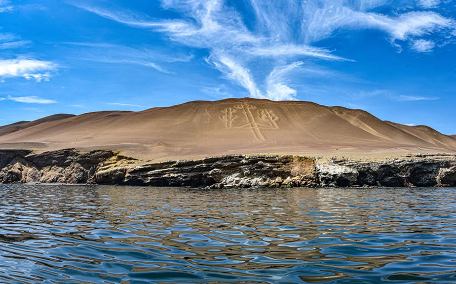 在前往鳥島途中,船長會特別停船讓大家欣賞刻畫在海岸巨大沙丘上的一個神祕圖案。這個高達150公尺的燭台狀地畫,究竟是古代海員的導航標誌,還是與納斯卡線有關的遺跡?至今仍是不解之謎。