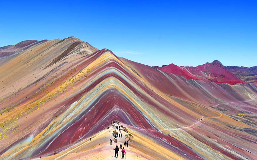 今日將前往近年祕魯最熱門的秘境—彩虹山。因富含不同礦物質,經由千萬年風化,在山脊上形成了紅、黃、綠、紫等色彩斑斕的條紋,景象夢幻。