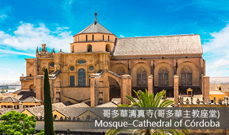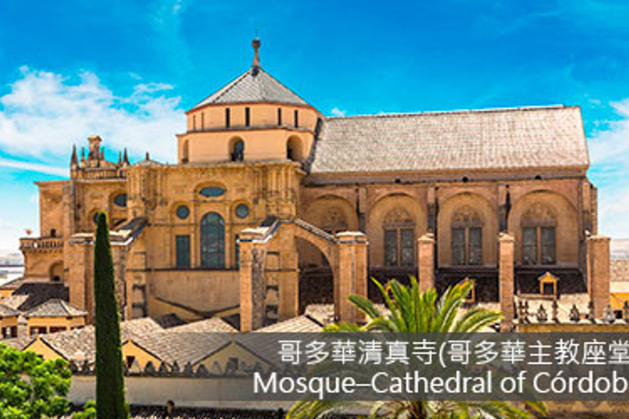 哥多華清真寺(入內參觀):外部19扇門面顯現其壯闊氣勢,內部由850根瑪瑙碧玉般的大理石圓柱裝飾而成。