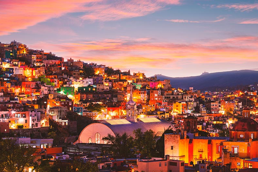 Edelmira Boutique Hotel或同級 第 3 天 瓜納華托 (Guanajuato) 深度全日遊 【走進《可可夜總會》的夢幻原型】 今日全日探索這座被譽為「上帝打翻調色盤」的山城。瓜納華托以其錯綜複雜的地下隧道、色彩鮮豔的房舍以及濃厚的藝術氣息聞名,也是迪士尼電影《可可夜總會 (Coco)》亡靈之城的靈感來源。 【必訪亮點】 皮皮拉山 (El Pípila) 觀景台: 搭乘纜車上山(單程纜車),俯瞰整座瓜納華托山城。五顏六色的房子沿著山谷層層堆疊,是墨西哥最經典、最美麗的明信片風景。 接吻巷 (Callejón del Beso): 一條窄到情侶可以在兩邊陽台接吻的巷弄。聆聽這裡流傳的羅密歐與茱麗葉式淒美愛情傳說,是來到這裡必做的浪漫之事。 華雷斯劇院與聯合花園: 參觀外觀華麗的劇院,並漫步於熱鬧的聯合花園 (Jardin de la Union),這裡總是聚集了穿著傳統服飾的學生樂團 (Estudiantina),充滿歡樂氛圍。 瓜納華托 瓜納華托