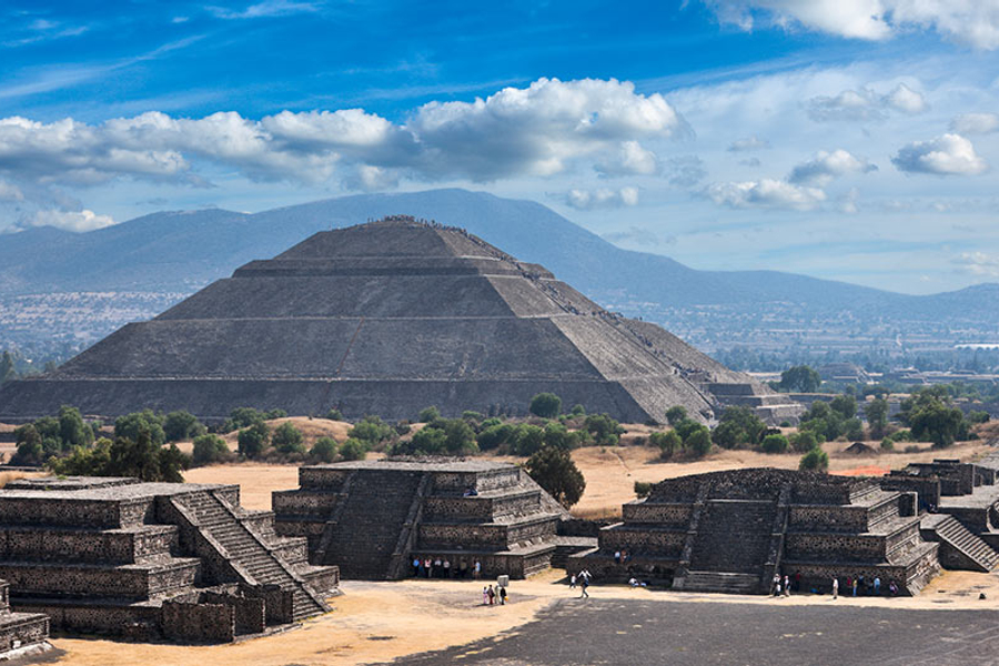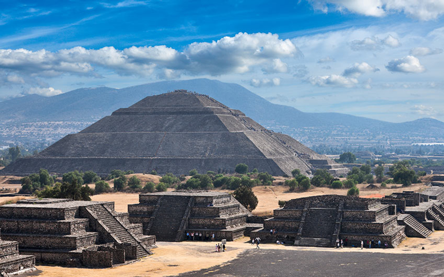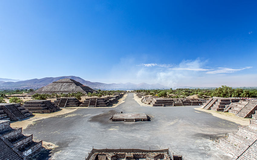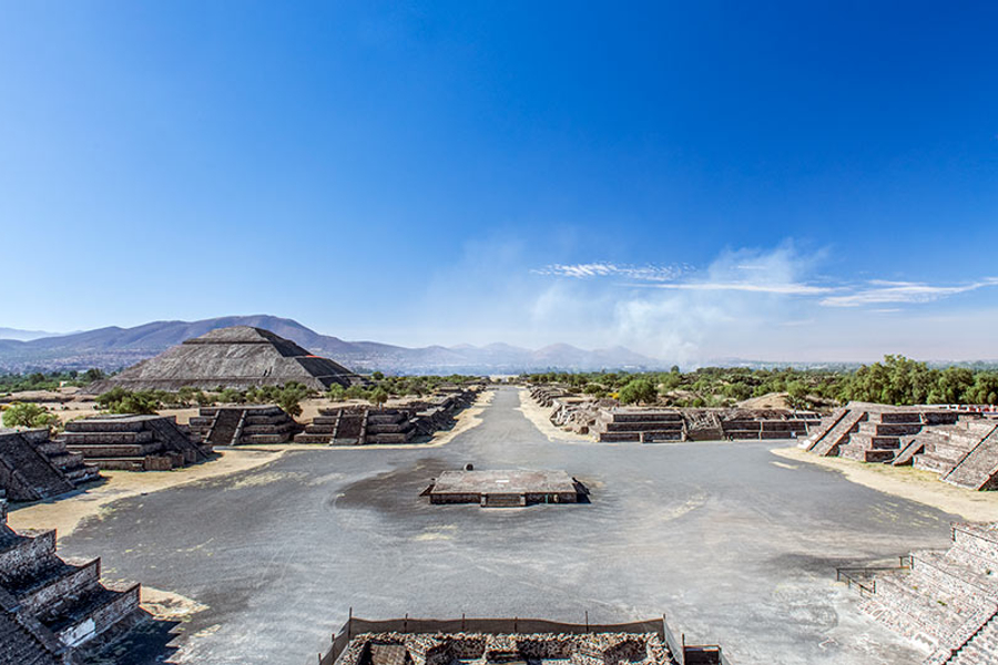 第 7 天 墨西哥城➔特奧蒂瓦坎(眾神之城:亡靈大道、月亮金字塔、太陽金字塔、羽蛇神神廟)➔查普爾特佩克城堡➔墨西哥城 【攀登太陽與月亮金字塔】 今日前往近郊的世界遺產—特奧蒂瓦坎 (Teotihuacan)。這個文明比阿茲特克更古老,被稱為「眾神誕生之地」。 【文明探秘】 太陽金字塔與月亮金字塔: 漫步在寬闊的「亡靈大道」上,仰望這兩座巨大的金字塔。這曾是美洲最大的前哥倫布時期城市,其精準的都市規劃至今仍令考古學家驚嘆。 特奧蒂瓦坎遺蹟群:多為古代居住民房與金字塔,阿茲特克人在公元550年左右這座城市淪陷後的幾個世紀中對它的稱呼,意思是「眾神的誕生地」。遺址中央有一個南北向的軸心稱為「亡靈大道」,實際上是一個比較像是長方形廣場的寬廣大道。之所以被稱為「亡靈大道」,是因為西班牙人來到此地時,看到成群的金字塔。西班牙人由於古埃及的金字塔之故,認為所有金字塔都是陵墓,於是把這條金字塔群中的大道如此命名。事實上印第安人的金字塔不是陵墓,而是祭祀或是占卜測量用的。 大道的北端是月亮金字塔(西班牙文:Pirámide de la Luna),中段的東側則有一座古代墨西哥最高大的建築,稱為太陽金字塔Pirámide de s’ol,這兩座金字塔的造型都是採用階梯狀的梯型疊成、正前方設置有非常陡峭的走道,其中月亮金字塔長寬分別為170公尺、150公尺,太陽金字塔的基座則為225公尺乘以222公尺,接近正方形,全高64公尺,推測太陽與月亮金字塔的塔頂在古代可能還有神廟狀的建築,因此金字塔實高比現今高一些,但因為年代久遠早已消失,只剩下一個略呈圓頂狀的小丘。另外月亮金字塔比太陽金字塔矮一些,但由於月亮金字塔所在地勢較高,因此這兩座主要金字塔的塔頂是接近水平的。 除了兩座大型金字塔外,整個遺蹟群還包含了位在太陽金字塔對面的羽蛇神神廟,與一些圍繞在大道周圍的迷你金字塔與半地下半地上的建築物地基。整個特奧蒂瓦坎遺蹟的佔地約83平方公里,由於早在西班牙人登陸墨西哥之前,該地就已經無人居住呈現荒蕪狀態,因此當西班牙人征服墨西哥各民族,大肆破壞印地安原住民的建築物建立自己的殖民地文化時,特奧蒂瓦坎反而躲過一劫安然存在到今日,而成為今日古代墨西哥文明非常重要的一個象徵物,並受到各方高度重視。 特奧蒂瓦坎 特奧蒂瓦坎