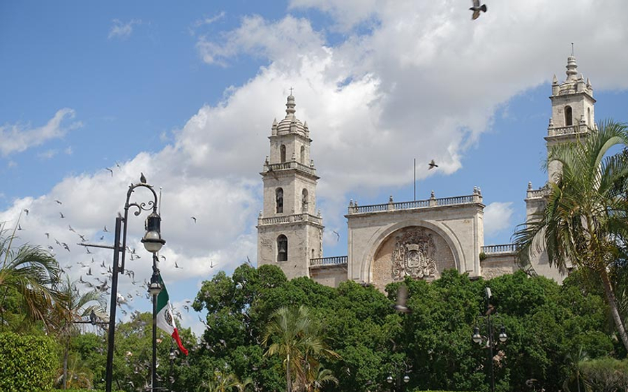 第 8 天 墨西哥城MEX/梅里達MID (Merida)-市區觀光 【飛往猶加敦半島.白色城市】 搭機飛往猶加敦半島的文化中心—梅里達。這座城市因其白色的石灰岩建築而被稱為「白色城市 (La Ciudad Blanca)」,融合了馬雅文化與優雅的歐洲風格。 【城市漫遊建議】 蒙雪燕大道 (Paseo de Montejo): 這條寬闊的大道靈感來自巴黎香榭麗舍大道,兩旁矗立著19世紀因瓊麻貿易致富的富豪豪宅,展現了昔日的繁華。 大廣場 (Plaza Grande) 與大教堂: 參觀建於16世紀的聖伊德方索大教堂 (Catedral de San Ildefonso),這是美洲大陸最古老的教堂之一,部分石材據說來自古代馬雅神廟。 梅里達 聖伊德方索大教堂