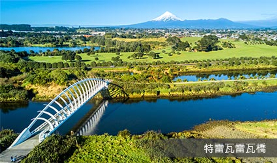 外形獨特,設計靈感來自鯨魚骨架,令人印象深刻,是遊客必到之地。這道橋的選址,刻意與塔拉納基雪山對齊,安排在毛利人認為神聖的山脈下(Mount Taranaki),離遠觀看時,雪山構築於傾斜拱骨架之內,據說是象徵永恆的承諾,理由是此位置乃紐西蘭著名歷史火槍戰爭的地點,予以紀念。