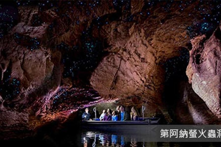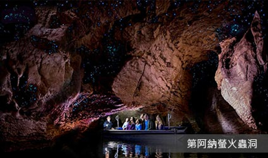 傍晚搭船遊覽Lake Te Anau湖,並前往參觀世界奇景第阿納螢火蟲 洞,在1948年第阿納螢火蟲洞重新被⼈發現,在遊船抵達後,分批展開⼀段奇特的地下河流探險旅程,在穿過⽯灰岩⼭洞的地下河中搭乘⼩⾈(洞內溫度終年攝⽒8-12度),無聲無息的滑入⾃然天成的地下湖中,於⼀片靜謐中欣賞紐⻄蘭特有的螢火蟲所構築的滿空爍藍,令⼈屏息感動。