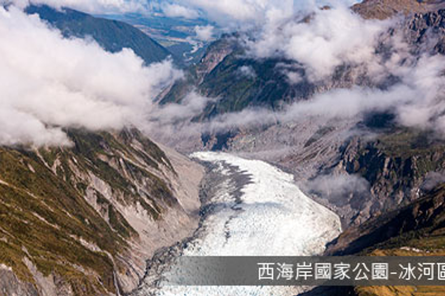 紐⻄蘭⻄海岸冰河冰河⾏程欣賞Franz Josef Glacier法蘭茲約瑟冰河或 Fox Glacier福斯冰河。冰河位於⻄岸Westland Tai Poutini National Park泰普提尼國家公園,最特別的是您不需特殊裝備⽤步⾏的⽅式就可以觀看溫帶冰河奇景