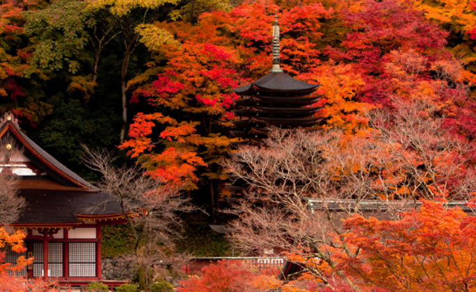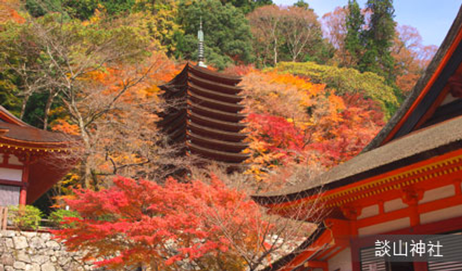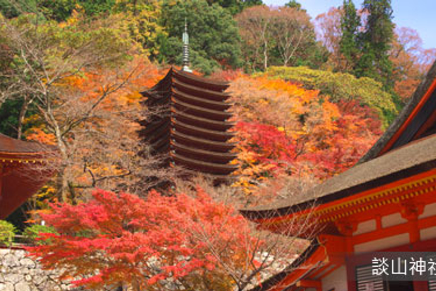 知名的春天賞櫻、秋天賞楓的名勝,並且境內有世界唯一一座木造結構的十三重塔,許多座塗上朱紅色的社殿,古色古香的建築物與樹木的交映之下,與楓紅相互輝映,絃麗奪目的美景讓人屏息,談山神社也是著名的結緣神社,如看到傳說中神明附體的結緣岩座,記得摸摸它許下心願。