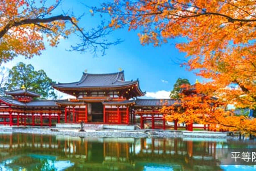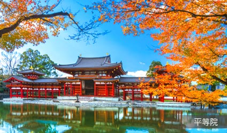 平安時代後期,藤原賴通將父親藤原道長的別墅改建為寺院。當年以宇治川與群山納入建築規劃之中,打造有淨土庭園之美譽的藍圖,成為往後日式庭園的參考指標。