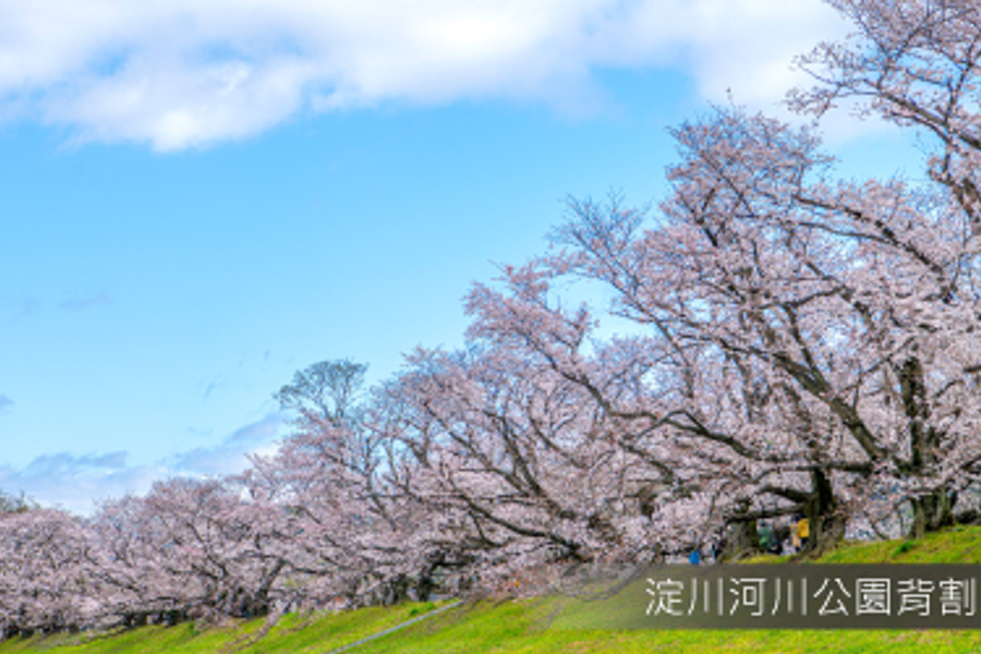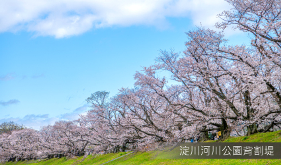 淀川河川公園背割堤位於木津川和宇治川交界之處,這條長長的河堤種滿了綿延 1.4 公里的櫻花並木,春天時沿著河岸而盛開的粉色櫻花帶,樹齡悠久的櫻花樹枝交錯並延伸至堤岸兩側,滿開時密可蔽天的吉野櫻構築成極其夢幻的櫻花隧道!