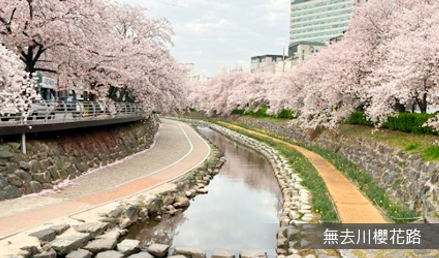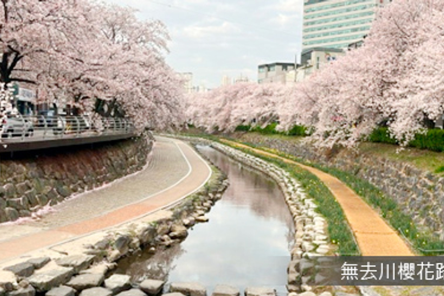 位於慶南蔚山的無去川,全長約2.5公里,由400多棵櫻花沿著無去川下川,從太和江一路延伸至蔚山大學,形成一條長達2.5公里的櫻花隧道。若於櫻花慶典期間更會舉行晚間活動,川上的小燈飾亮起燈光,映照著櫻花樹,河川亦化身成一面鏡,櫻花樹樹影婆娑,映射出一串銀光。(無去川可能因天候或其他因素不點燈,將以主辦單位公告為主,恕不另行通知。)