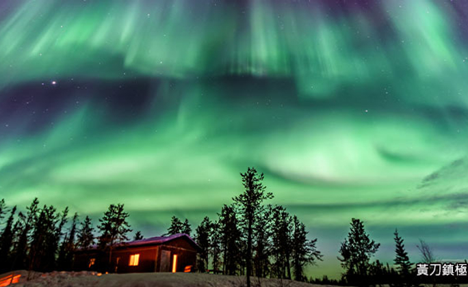 位於加拿大西北部,地處北緯62.5度,完美被北極光橢圓環帶區所涵蓋。黃刀鎮因冬季晝短夜長、光害少、天氣穩定,一年大約有250天可以觀賞北極光,極光可見機率甚高,被公認為全世界最適合觀賞極光的城鎮。
