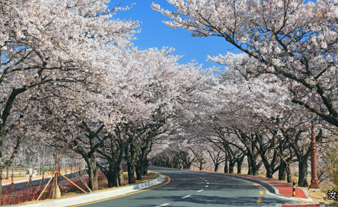 在首爾最具代表性的櫻花隧道,正是可以簡便地欣賞櫻花的汝矣島輪中路。輪中路是在汝矣島國會議事堂後方,由生長了30-40年左右的1400顆櫻花行道樹所組成的道路。每當四月初中旬時,全長5.7公里的輪中路,就會傾瀉綻放華麗的櫻花,每年都吸引250名的觀光客來訪。