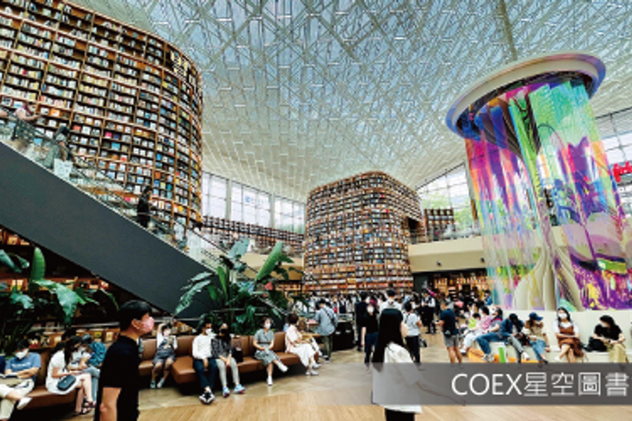 STARFIELD LIBRARY,在首爾江南區,由COEX MALL百貨商場設立。挑高空間搭配二、三層樓高的發光書架,閃閃發亮就如同名字般,像那星星般閃耀迷人。