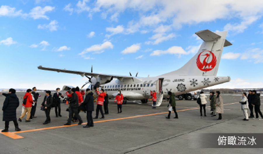 由女滿別機場搭乘螺旋槳飛機從空中俯瞰流冰美景。這將是一次非常難忘的體驗。