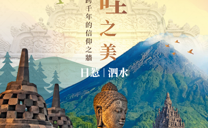 婆羅浮屠:世界文化遺產、世界目前最大佛寺,以精美浮雕和宏偉的階梯式曼荼羅石塔,表達佛教的三界宇宙觀。
