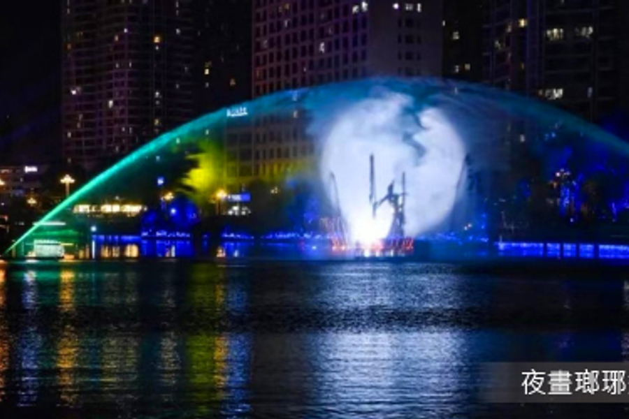 夜幕降臨、來到臨沂市中心,坐上船舫沿著沂河二岸,盡賞歌舞表演,在3D燈光夜影效果中,為今天旅程畫下完美的句點。
