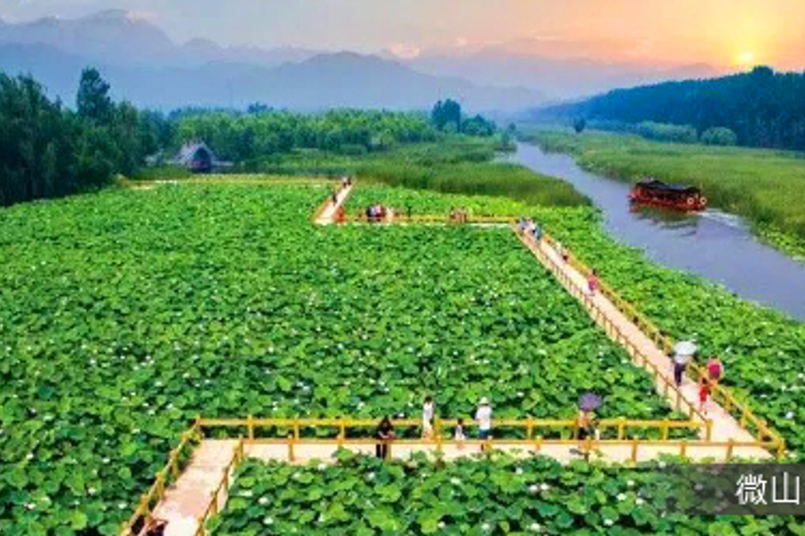 微山湖濕地紅荷旅遊風景區,是華東地區最大且保存最原始的濕地景觀,上萬頃的荷花觀賞地,讓微山湖享有“中國荷都”之美譽。