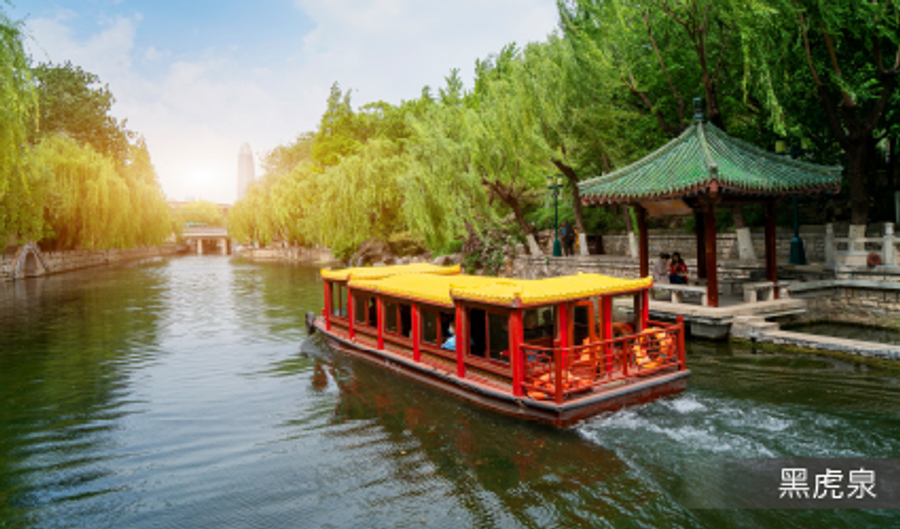 濟南又名泉城,而黑虎泉便是這無數大大小小的噴泉中,位居四大泉群之一。黑虎泉是一處天然洞穴,水深3米,噴泉湧出的氣勢壯觀,尤其夜色中遠遠聽更像是虎吼,因此而得名黑虎泉。泉水涌入方形泉池,池內的泉水清澈,青藻漂浮,型塑出黑虎泉“家家流水、戶戶垂楊”清幽名景,泉水順勢流入護城河,最終形成瀑布,黑虎泉成爲了環城公園中的一大勝景。