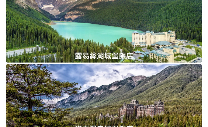 行程安排 露易絲湖城堡飯店 與 班夫費爾蒙溫泉城堡飯店 一晚