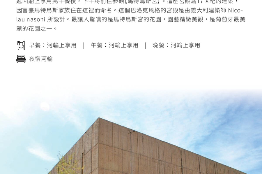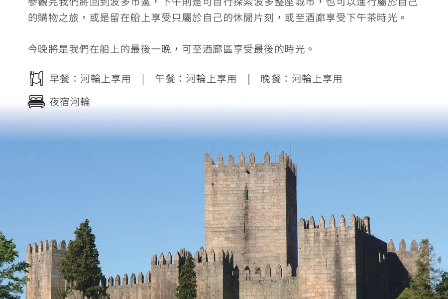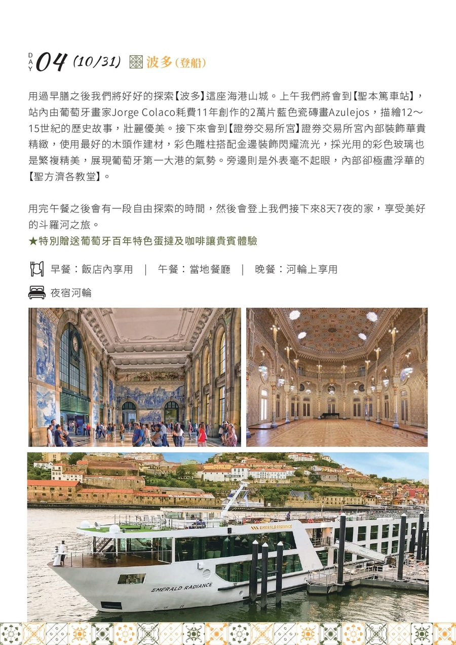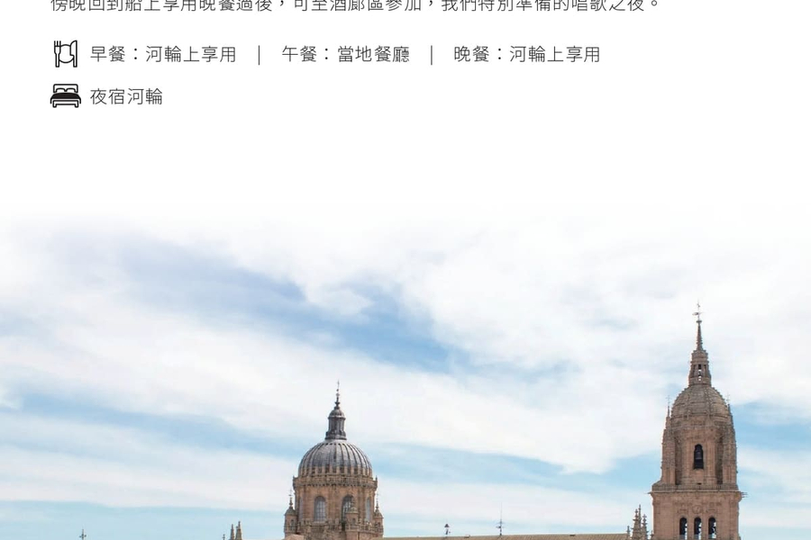 船上設施則體現現代簡約與歐式典雅的結合,包括寬敞的觀景酒廊、可變形為星空電影院的無邊際泳池、設備齊全的健身房與寧靜芳療室,無論是清晨練瑜伽還是傍晚在甲板品酒,都顯得從容不迫、儀式感十足。除船上設施外,搭乘Emerald Radiance遊覽斗羅河,更能深度體驗歐洲的浪漫風情與深度文化,並享受行程舒適度的平衡,免除繁瑣安排,實現真正的「全包式優雅之旅」。