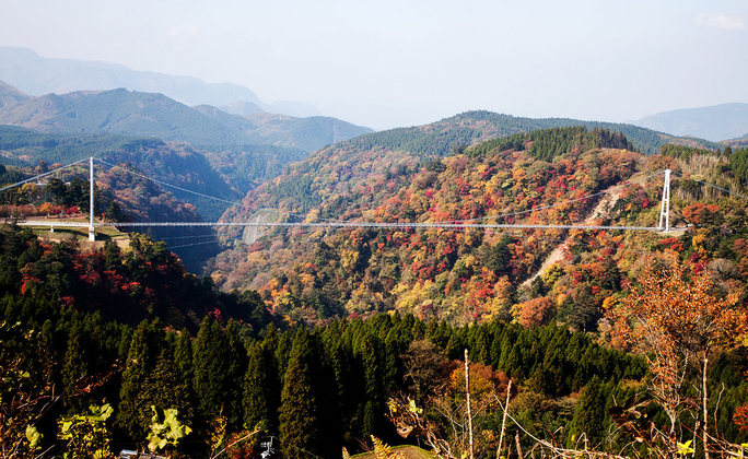 高千穗峽是恆古以前阿蘇山的火山噴發後形成的溪谷。特徵是兩側都有斷崖,有落差為17米的真名井瀑布,與美麗絕景一起存在的還有在同一峽谷上架起的三座橋,這也是高千穗峽的美麗所在。。▲別府空中纜車:
