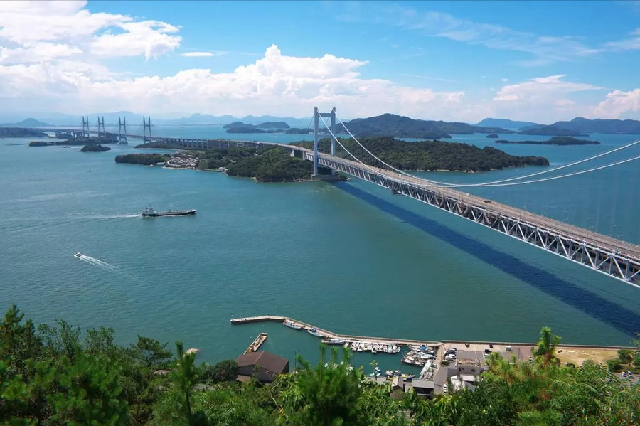 是一座建在海上的神社。寢殿以莊嚴華麗的建築風格而著稱。聳立在海上的“大鳥居”,是宮島的象徵,和有著紅柱、白壁的神殿與周圍的綠色森林、藍色的大海相映生輝,1996 年也被列爲聯合國教科文組織的世界文化遺産。大鳥居平常被海水沒去一半,退潮時可以走著去。神社周圍有千疊塔,保留著建造當時的模樣,另有混合了日本和中國兩種建築樣式的紅色五重塔等,它們都已被指定爲重要文化遺産。。▲【倉敷美觀~日本第一水街風情】