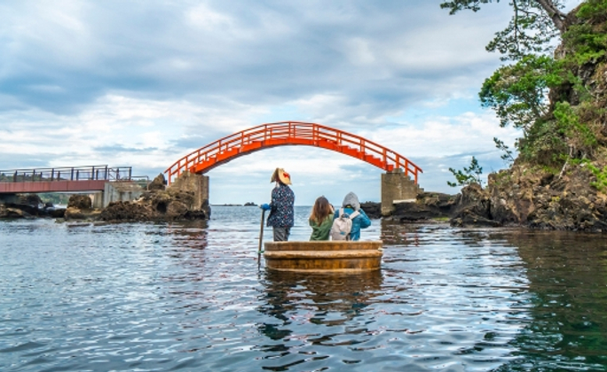 島山漁民為方便捕捉鮑魚、龍蝦、貝類而設計出方便於岩石間活動之海上交通工具~盆舟,其外形獨特,轉向靈活,移動自由,讓您充分享受坐在舊式洗衣桶裡划船的滋味,日本知名動畫電影「神隱少女~千尋」在劇中千尋就曾搭乘過這種獨具特色的盆舟喔,您有空時不妨回憶一下。