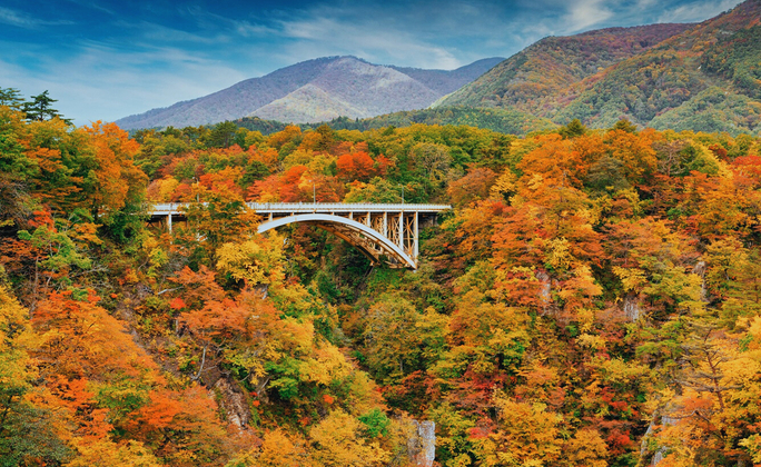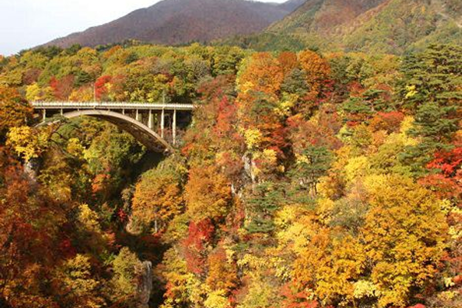 旅遊小語:秋染東北,絕美楓情啟程!搭乘藏王纜車飽覽紅葉山景,漫步銀山溫泉彷彿走入時光隧道,鳴子峽展望台賞楓絕景、磐梯高原繽紛如畫。遊歷大內宿古街、松島遊船悠遊百景,三晚傳統日式溫泉暖心暖身,體驗最迷人的東北秋旅。。鳴子峽展望台: