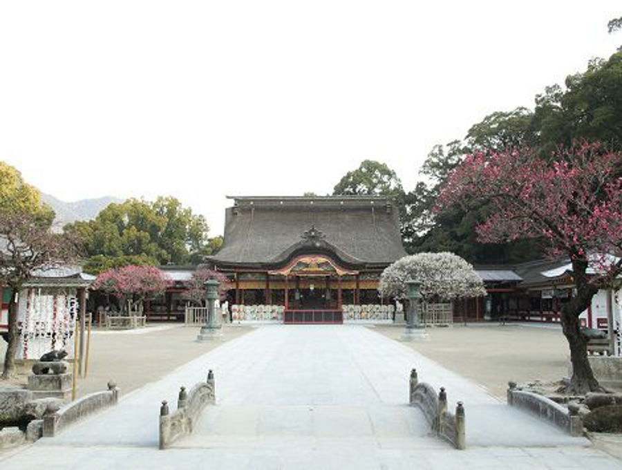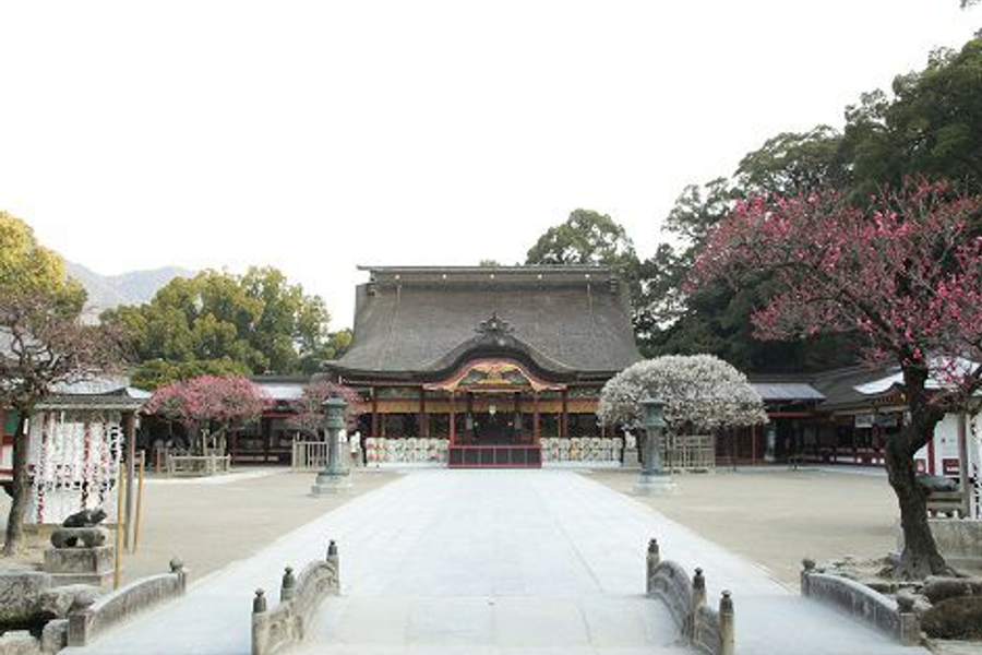太宰府天滿宮【天滿宮總寺院文化遺產】:◎九州文化古都太宰府天滿宮,地位相當於中國的孔廟,宮內祀奉著「學問之神」菅原道真,每到日本考試期間,各地擁入的祈福人潮駱驛不絕,在日本各地的天滿宮均以此地為總寺院,院內有寶物殿、心字池、太鼓橋等景物。此地遍植梅樹,初春時節上千棵梅樹爭豔,而以梅製成的梅餅、梅茶,則變成了當地特產。<br>太宰府於2023年3月~5月興建工事,不影響來訪參拜。