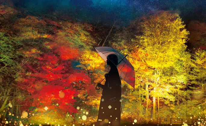 夜訪夢幻的 閃耀紅葉谷,在燈光映照下欣賞夜楓光影,呈現與白天截然不同的秋夜之美;走進 楓染美術館,在藝術與自然交會的空間中,感受楓紅帶來的靜謐與深度。