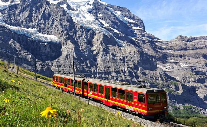 Jungfrau的德文原意是「處女」的意思。以前住在伯恩高地的居民,經年累月的長期觀察氣候變化,發現每年最早下雪的地方都是這個山頭,初雪宛如處女般潔淨,因而取名為少女峰。少女峰位於瑞士中部的伯恩高地,是阿爾卑斯山脈的主體,這一地區已於2001年被聯合國教科文組織列為世界自然遺產。。黃金景觀列車Golden pass