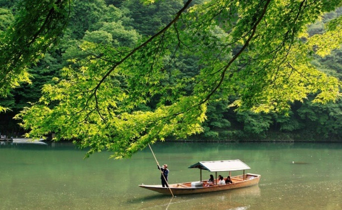 擁有造型獨特的《清水的舞台》莊嚴又雄偉的木造結構建築,由巨大的木柱支撐,從峭壁上伸展出去,勾勒出千年古都的典雅。。 ▲嵐山屋形船