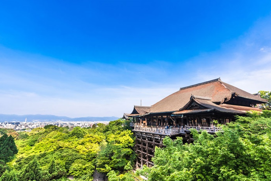 擁有造型獨特的《清水的舞台》莊嚴又雄偉的木造結構建築,由巨大的木柱支撐,從峭壁上伸展出去,勾勒出千年古都的典雅。在清水舞台下方,茂密的枝葉中仰望站在斷崖上的清水舞台,都教人嘆為觀止;另外寺前的產寧步道,兩排長達200公尺的京味小舖,更讓您流連忘返。