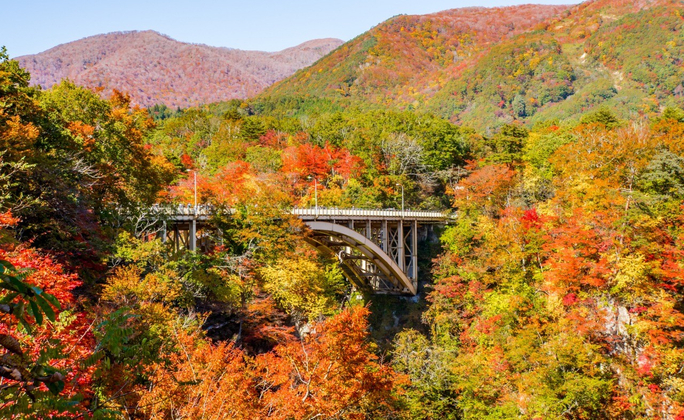第 2 天宮城縣-紅葉名所◆宮城鳴子峽展望台~觀賞百米深峽谷的壯麗景致-紅葉名所◆角館武家屋敷(東北小京都之稱)-秋田內陸縱貫鐵道(角館~松葉)~鐵道列車欣賞沿路美景-紅葉名所◆田澤湖(號稱日本最深的湖泊)-岩手縣