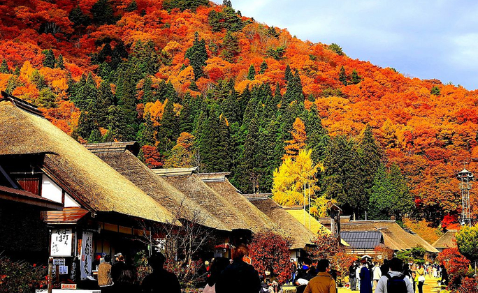 紅葉名所◆大內宿【結合了傳統建築自然美景三大合掌村之一】:是日本江戶時代的宿場町,也就是現在所稱的旅館,早期由越後來往東京的商人、赴京上任官人或是旅人都在此落腳住宿。進入大內宿後,以兩旁茅草屋建築為中心的會津西街道是大內宿最熱鬧的街道,為昔日連結福島縣會津若松與日光市的重要交通樞紐。江戶時期生活物資運送由北至南,都必須經由這條道路,因此大內宿在當時是經濟繁榮的交通重鎮。1884年121線高速道路開通,大內宿的繁華不再,留下來的只有傳統茅屋建築,現在已被日本政府評定「重要傳統建造物群保存地區」,和岐阜縣的白川鄉、京都的美山町並稱茅屋之里。<br><br>豬苗代湖【倒映著蔚藍天空和磐梯山美景的湖泊】:是由磐梯群山的火山活動所形成的淡水湖,位於海拔514公尺的高地上,面積104㎞2,水深94.6m,是日本第四大湖,隸屬於磐梯朝日國立公園,湖水透明清澈映照天空彷彿像一面鏡子,因此又名天鏡湖。四季風景優美,是福島縣著名的觀光景點之一。<br><br>紅葉名所◆會津若松鶴之城【日本百大名城】(不上天守閣):福島縣最著名的古城,又名鶴城,建於西元1384年。明治維新之初,發生一場幕府與保皇派之間的激戰,城堡焚毀,西元1965年重建。若松城是日本近代有名的歷史舞台,造型有如白鶴展翅般,因此有『鶴城』之稱;公園區周邊十月中下旬楓葉盛開,吸引眾多的賞楓人群,是楓葉名所百選之一。<br><br>
