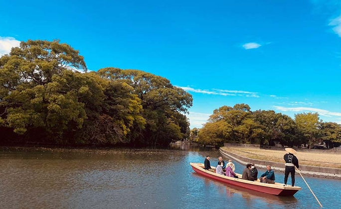 ▲熊本城:日本三大名城之一,與大阪城、名古屋城並稱為日本三大名城,是名將加藤清正耗費7年心血完成,由於全城種滿了銀杏樹所以又名銀杏城,在賞櫻季節來臨時,城外壕牆的櫻花樹盛開,包圍著整個熊本城一片粉白,十分壯觀美麗,在賞櫻花季時份外熱鬧,成千上萬的遊客絡繹不絕紛紛湧入,又因種滿銀杏樹,在秋季一片金黃彩繪環繞,甚是美麗。。