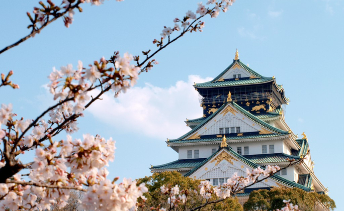 大阪城的櫻花,映於巍峨的城中,是盡顯磅礡的輝煌,