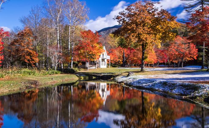 搭乘 黑岳纜車 登上高山視角,俯瞰層層堆疊的紅、橙、金黃山色,是北海道最具代表性的高山楓景;走進限時開放的 福原山莊秘境,私房庭園被紅葉包圍,靜謐又夢幻,宛如世外桃源。